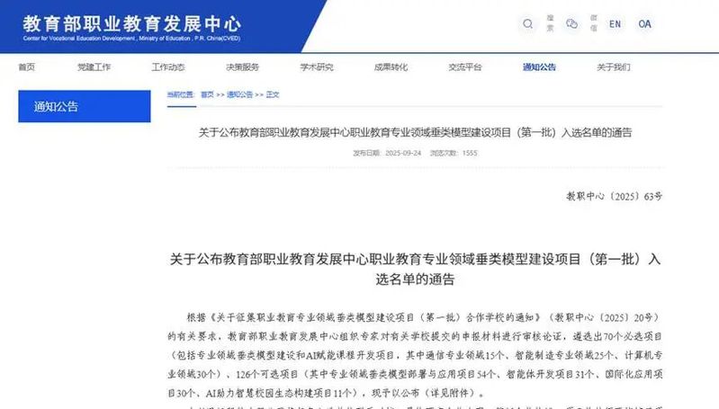 此次入選,體現了我院在人工智能、智慧交通、信息技術等專業領域的深厚積累與創新能力,也標志著學院在推進職業教育數字化轉型方面邁出重要一步。未來,學院將以此為契機,加快推進垂類模型建設與應用,為職業教育高質量發展注入新動能。
