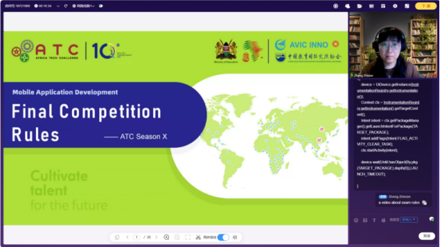 歷經一月密集培訓,移動應用開發賽項決賽成功舉辦,來自肯尼亞、埃及、加納、烏干達、坦桑尼亞、贊比亞、津巴布韋7個國家的56支隊伍、224名師生盡展所學、佳績頻傳。中航國際成套設備有限公司在感謝信中高度評價:“鄭志嫻、李伙欽兩位老師耐心授課、悉心指導,以及黃鴻杰等5位同學組成的線上學員管理團隊克服時差認真負責,受到廣大學員喜愛和歡迎?!?/p>