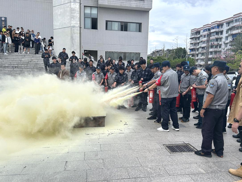 為切實提升師生消防安全意識和安保隊伍的應急處置水平,增強應對突發火情的自救互救能力,近日,學院在鑒知樓前組織開展了2025年下半年度消防演練活動。